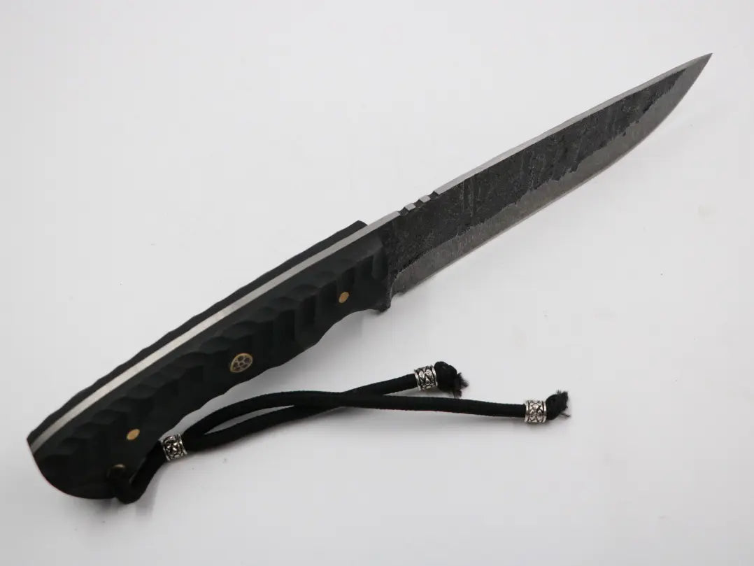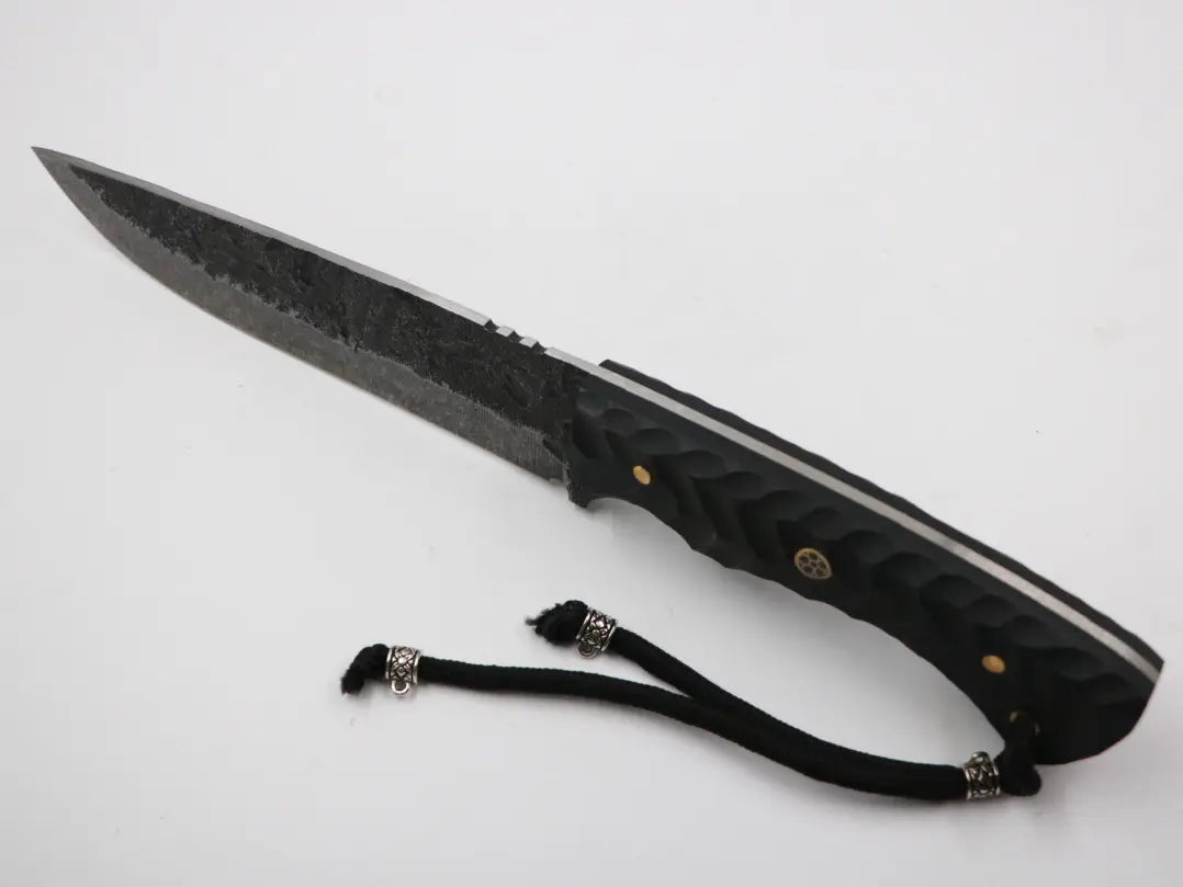 Das Messerfieber Slelenfänger definiert die Essenz eines hochfunktionalen, robusten und präzise gefertigten Outdoor-Messers neu. Mit einer beeindruckenden Klingenlänge von 165 mm, einer Grifflänge von 130 mm und einer Gesamtlänge von 295 mm, kombiniert dieses Meisterwerk aus 50CRV 4 Karbonstahl traditionelle Handwerkskunst mit modernster Technologie. Die 3,5 mm starke Klinge garantiert außergewöhnliche Haltbarkeit und Schärfe, während der ergonomische Full Tang-Griff aus T10 Material für eine optimale Handhabung sorgt. Komplettiert wird das Selenfänger durch eine hochwertige Lederscheide, die nicht nur Schutz bietet, sondern auch jederzeit einen schnellen Zugriff ermöglicht. Ein wahres Kunstwerk der Messerherstellung, das nicht nur ein Werkzeug, sondern ein unverzichtbarer Begleiter für alle Abenteuer im Freien ist.