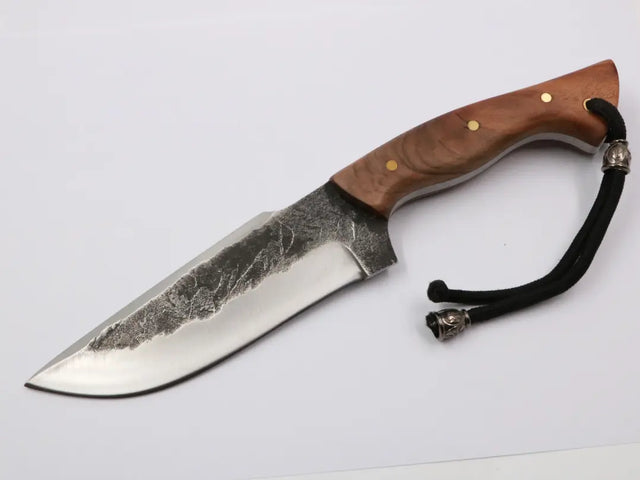 Das Messerfieber Stahlhagel ist ein zuverlässiges Schneidwerkzeug, das Robustheit und Funktionalität mit ästhetischem Anspruch verbindet. Mit einer 145 mm langen Klinge aus 50CrV4-Kohlenstoffstahl, einem ergonomischen Griff aus edlem Walnussholz und einer durchgehenden Full-Tang-Konstruktion eignet sich dieses Modell ideal für den vielseitigen Einsatz im Alltag oder bei Outdoor-Aktivitäten.