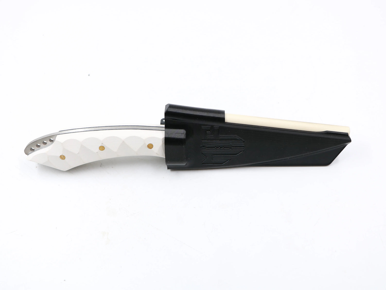 Das Messer ist mit einem modernen T10-Kunststoffverbundgriff ausgestattet, erhältlich in Schwarz oder Weiß.