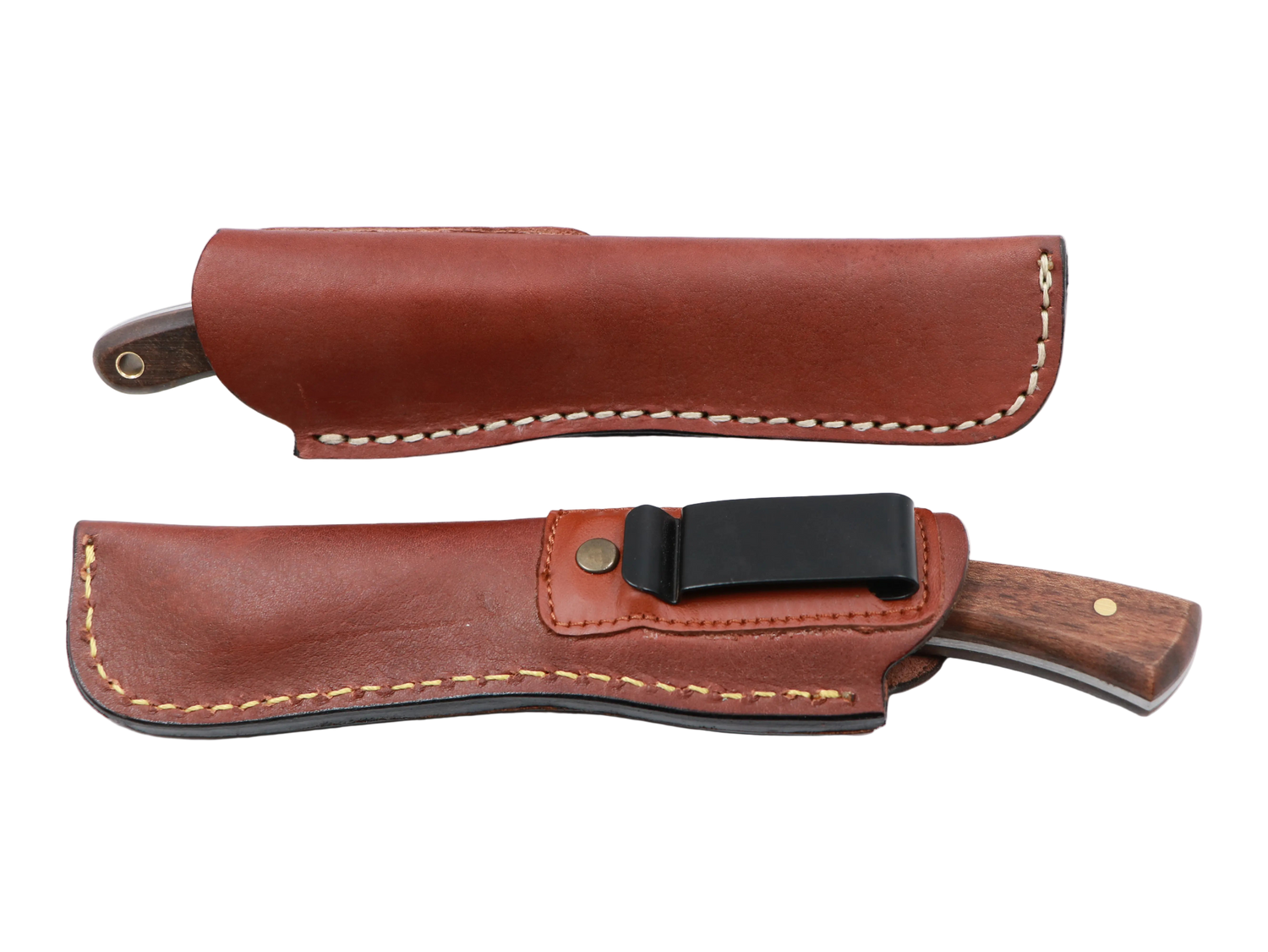 Das Set enthält zwei formstabile Lederscheiden, je nach Messer passgenau gefertigt.