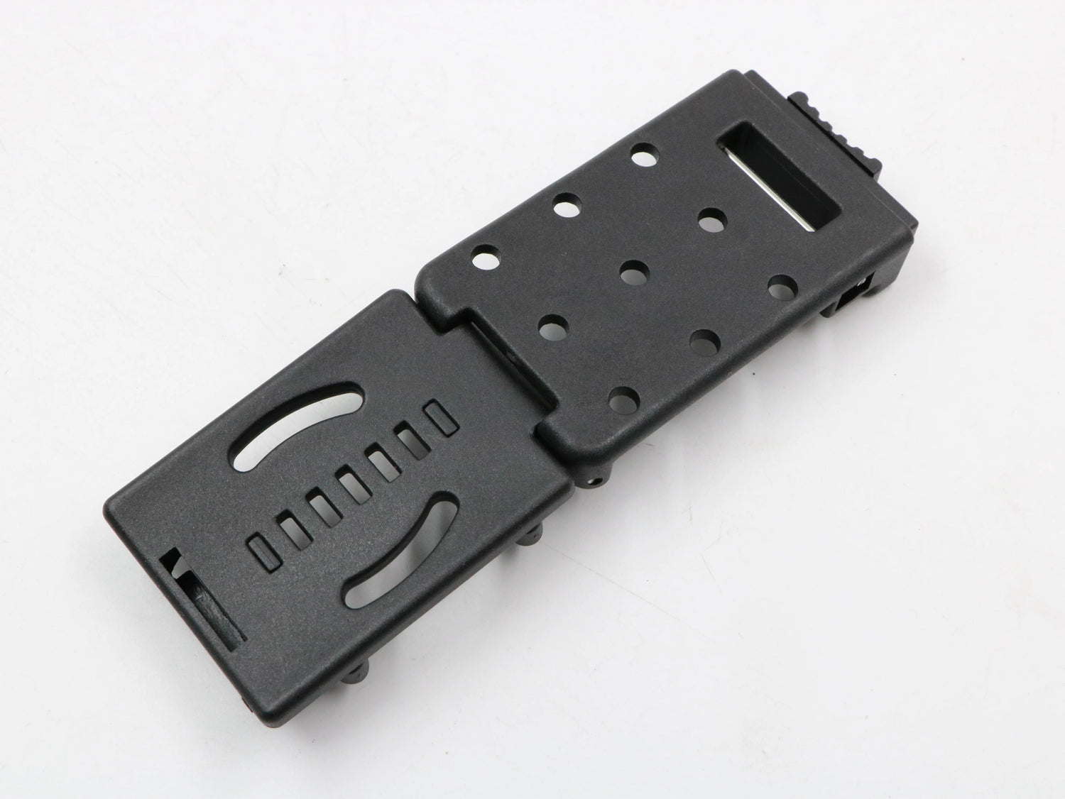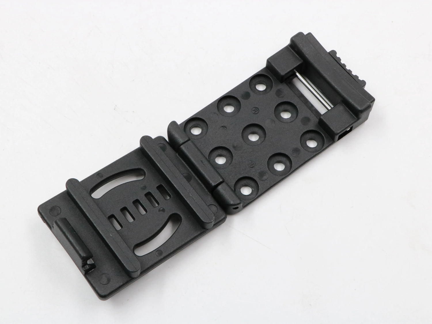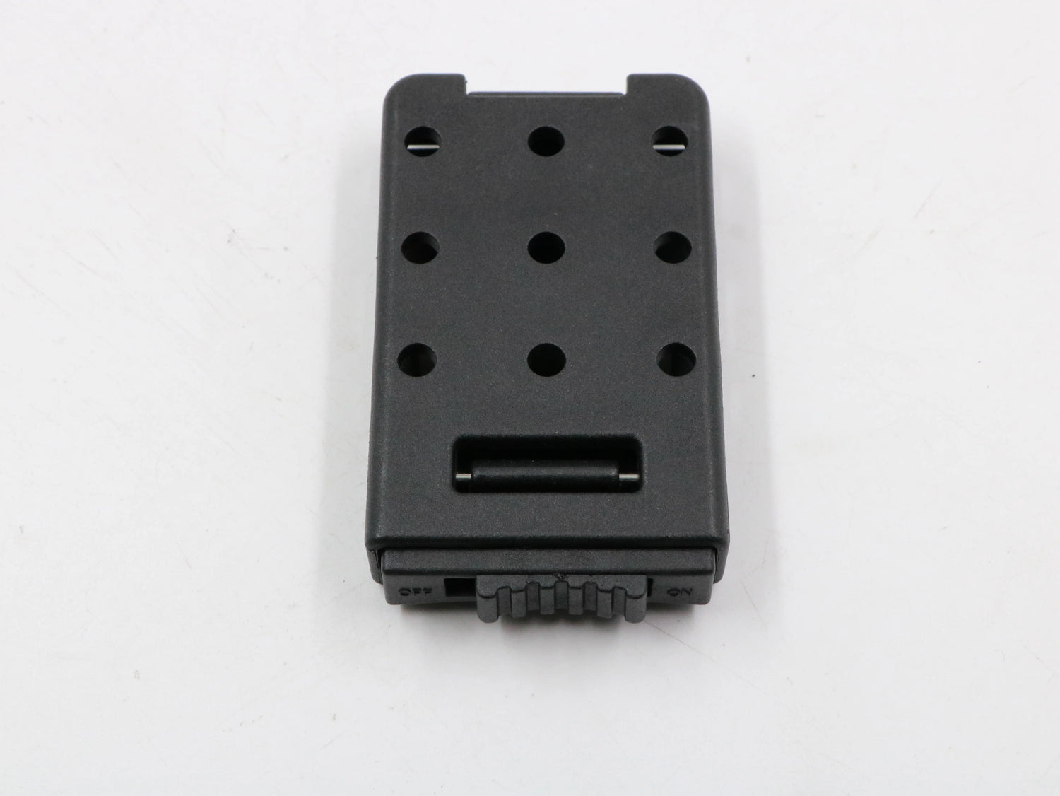 Dieses Modell verfügt über einen schnell bedienbaren Druckknopfverschluss, der ein einfaches Öffnen und Schließen ermöglicht – ideal für alle, die Wert auf schnellen Zugriff legen. Die großzügige Länge von 9 cm sorgt für eine stabile Auflagefläche, während die universellen Bohrungen eine flexible Befestigung an vielen Holster- und Scheidentypen erlauben.