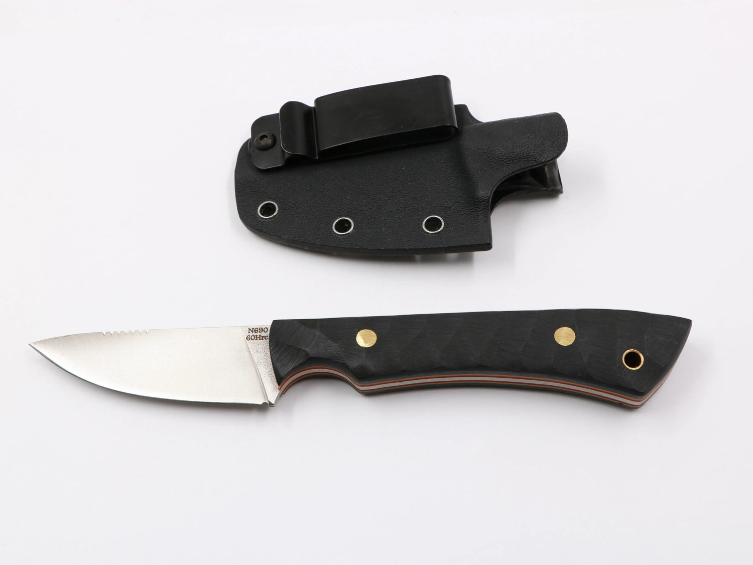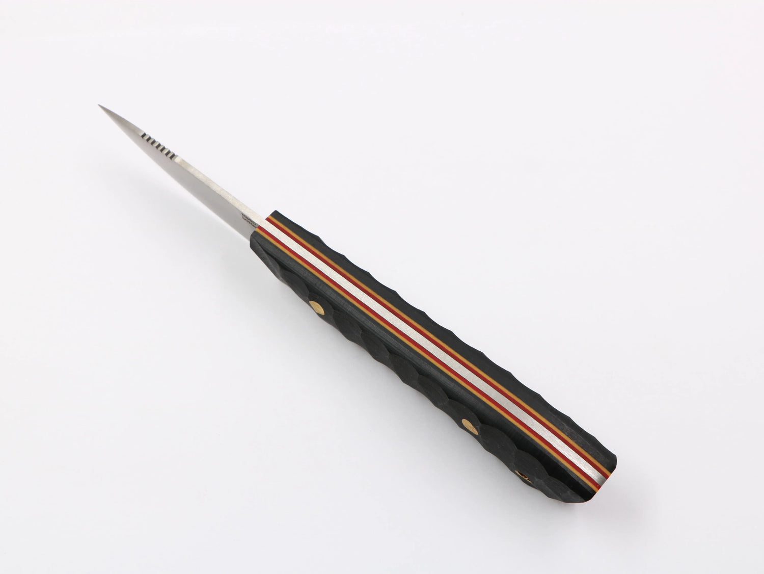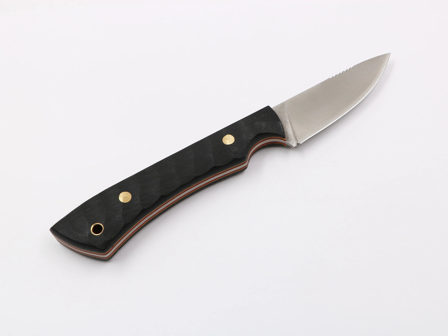 Die 75 mm lange Klinge aus N690-Stahl (60 HRC) bietet hervorragende Schnitthaltigkeit, Korrosionsbeständigkeit und Zuverlässigkeit im Alltag. Mit einer Klingenstärke von 2,6 mm und einer Full-Tang-Konstruktion ist das Bergspitzla trotz seiner handlichen Größe extrem stabil.