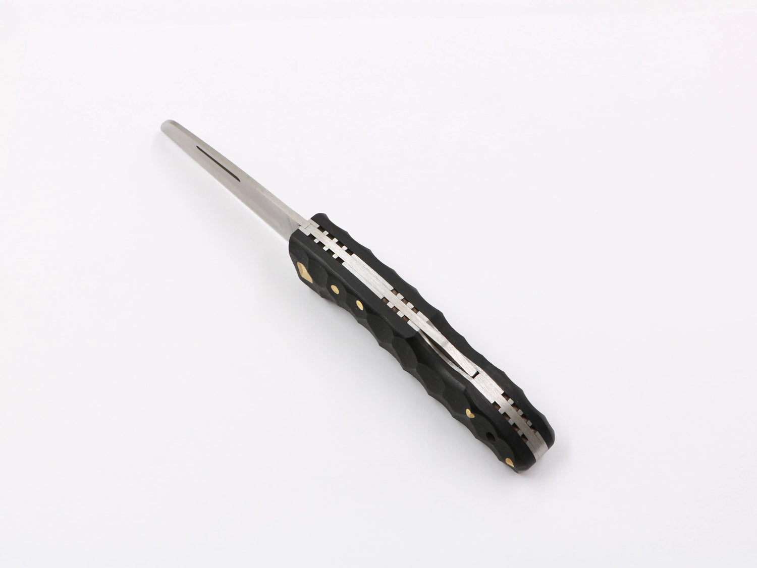 Die Klinge aus 1.4116 Krupp-Stahl überzeugt durch ihre Rostbeständigkeit, gute Nachschärfbarkeit und Alltagstauglichkeit – ideal für alle, die ein praktisches, legales und langlebiges Taschenmesser suchen.