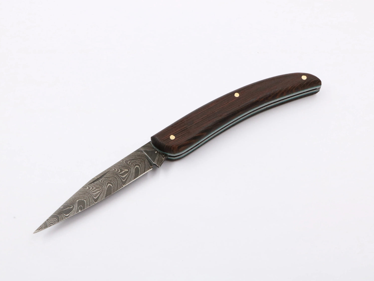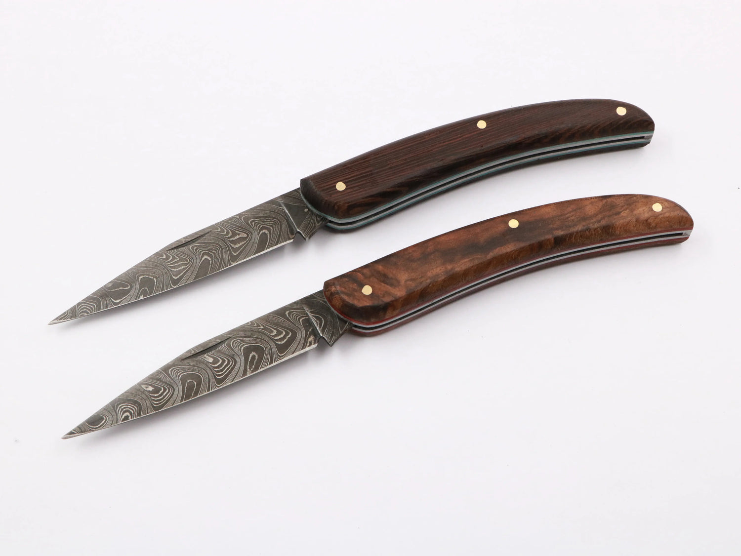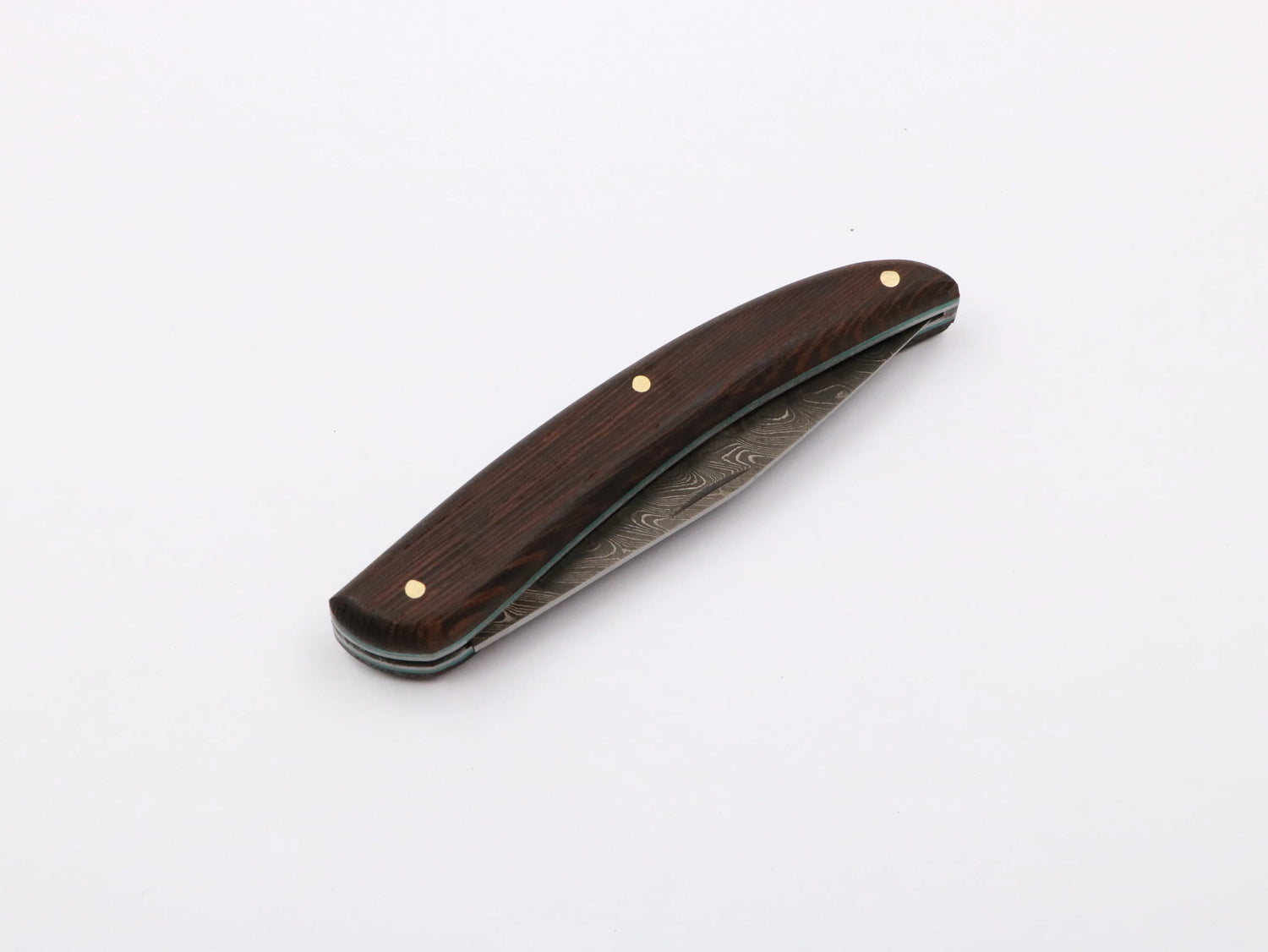 Zur Auswahl stehen zwei hochwertige Griffvarianten: warmes, lebendig gemasertes Walnussholz oder tiefbraune, markant gezeichnete Wenge. Beide Holzarten zeichnen sich durch ihre Langlebigkeit und ihren einzigartigen Charakter aus – jedes Stück ist ein Unikat.